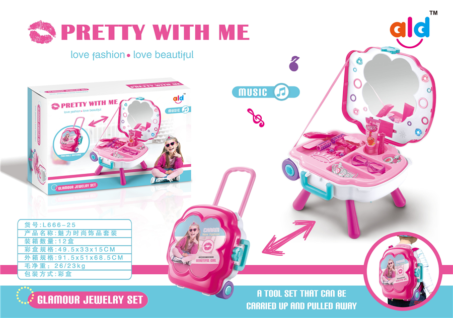 Beauty set included sound and it can be carried up and pulled away, packing in box.
